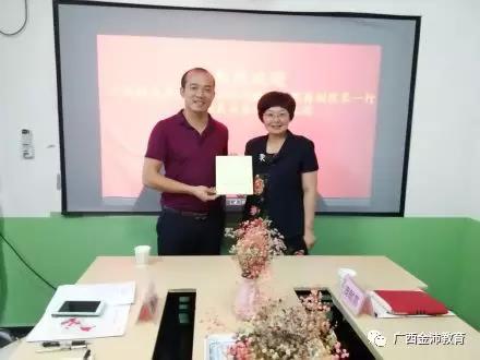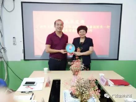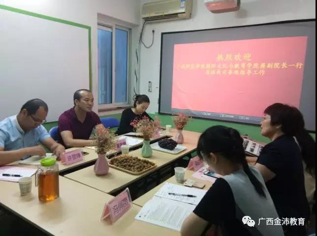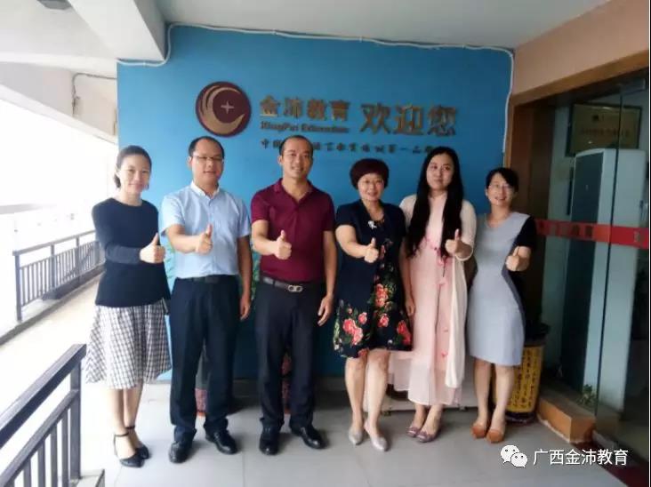 廣西金沛教育國際部團隊與廣西師范學(xué)院國際文化與教育學(xué)院蔣招鳳副院長(cháng)(右三)一行合影留念
