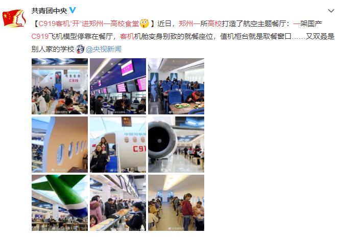 前段時(shí)間,微博@共青團中央分享的一則“C919客機‘開(kāi)’進(jìn)鄭州一高校食堂”的消息引起網(wǎng)友熱議,評論精彩紛呈。
