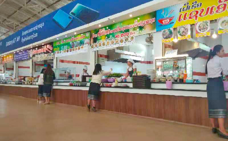 不同的食物由不同的窗口售賣(mài),當然打飯的窗口跟中國“玻璃窗后的阿姨似乎總有點(diǎn)手抖”不同,老撾國立大學(xué)的食堂窗口更像展會(huì )現場(chǎng)的攤位,制服統一的阿姨笑容滿(mǎn)面地等待你的到來(lái)。