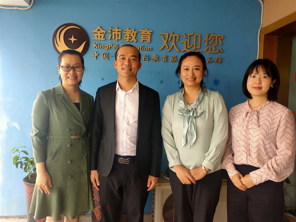 (左一廣西金沛教育校長(cháng)張金雪女士、左二廣西金沛教育執行董事粟宥朝先生、右二北京師范大學(xué)一帶一路學(xué)院陳健博士、北京師范大學(xué)一帶一路學(xué)院李邵悅老師)