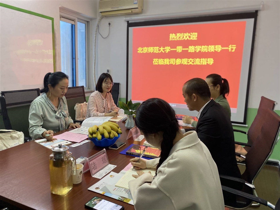 2021年4月7日上午,北京師范大學(xué)一帶一路學(xué)院陳健博士、李邵悅老師一行蒞臨我司參觀(guān)交流指導,我司執行董事粟宥朝先生、校長(cháng)張金雪女士、國際部專(zhuān)員陸瑤女士等參加了座談。