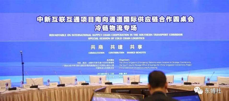 2018年9月12日,中新互聯(lián)互通項目南向通道國際供應鏈合作圓桌會(huì )·冷鏈物流專(zhuān)場(chǎng)在廣西南寧開(kāi)講。來(lái)自南向通道沿線(xiàn)國家與地區的 100 余名政界領(lǐng)導、商屆精英、行業(yè)領(lǐng)袖、專(zhuān)家學(xué)者就南向通道多式聯(lián)運的構建、農產(chǎn)品的需求與對流、冷鏈物流的建設進(jìn)行了深入淺出的討論。
