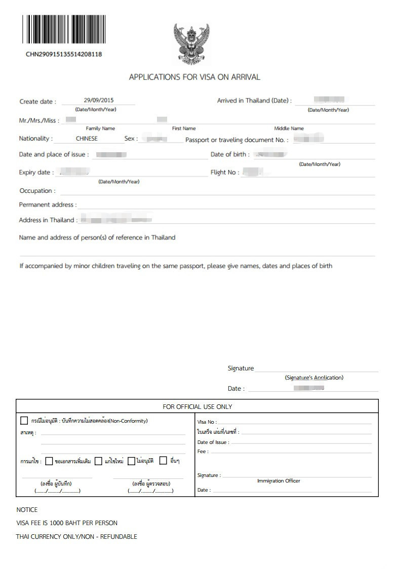 1. 泰國落地簽表格,建議游客在線(xiàn)完成后持打印文件入境,也可打印空白表格填寫(xiě)